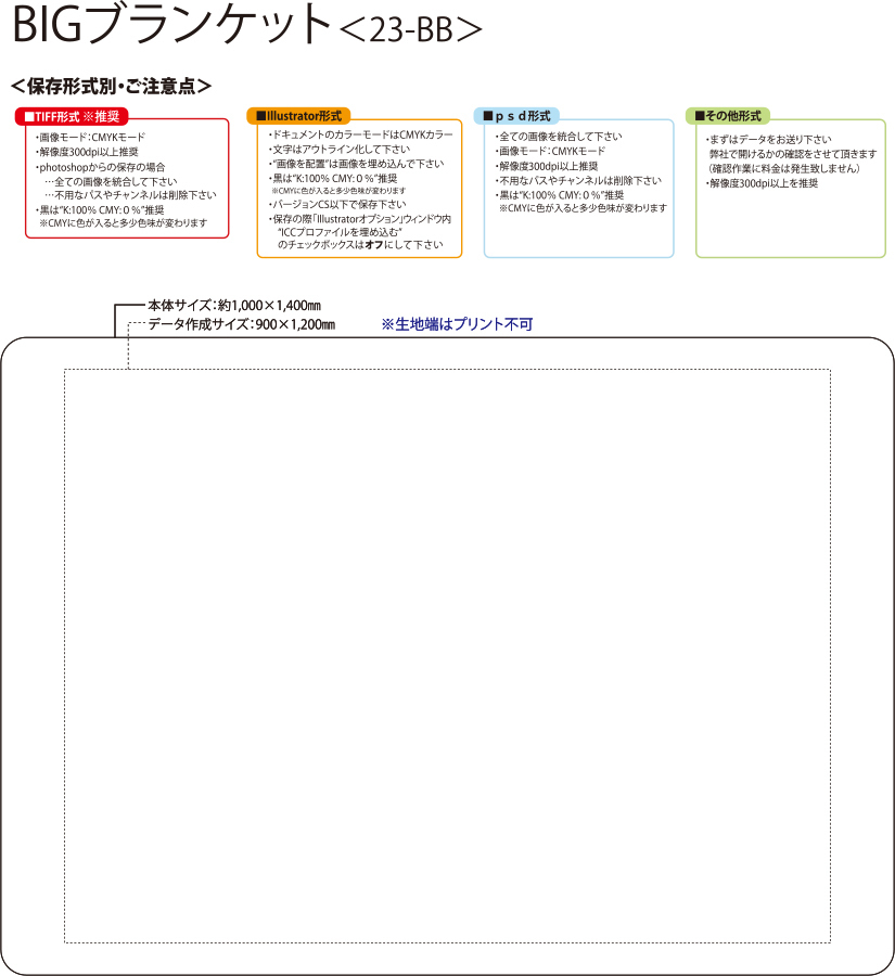 データ作成サイズ | 900mm×1,200mm(生地端はプリント不可) |
