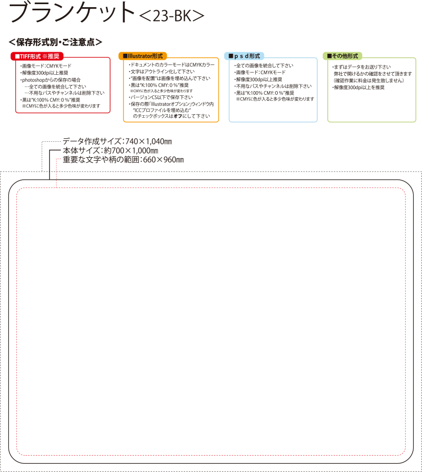 ブランケット本体のサイズも個々によって多少異なりますので、仕上がりサイズのギリギリに絵柄を配置されますと、切れる恐れがあります。