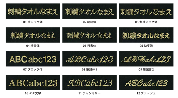 刺繍の書体と色の指定・刺繍したい内容についてはご注文をすすめ、備考欄に記載をお願いいたします。