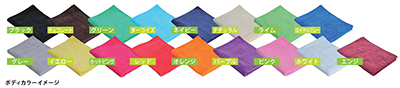 本体の色は、ブラック・チョコレート・グリーン・グレー・イエロー・ホットピンク・ターコイズ・ネイビー・ナチュラル・レッド・オレンジ・パープル・ライム・ロイヤルブルー・ピンク・ホワイト・エンジの17色。