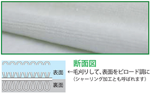 シャーリングタオルとは、表面のパイル(糸のループ)を刈り、ビロード調にする事により、肌触りが良く高級感があるタオルです。