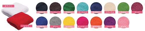 ホワイト、レッド、ブラック、チョコレート、グリーン、ターコイズ、ネイビー、ナチュラル、ライム、エンジ、ロイヤルブルー、グレー、イエロー、ホットピンク、オレンジ、パープル、ピンクです。