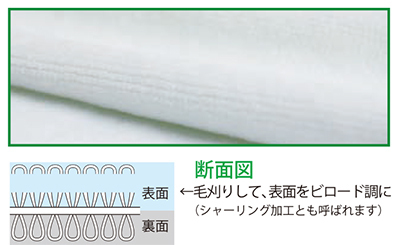 表面のパイル(糸のループ)を刈り、ビロード調にする事により